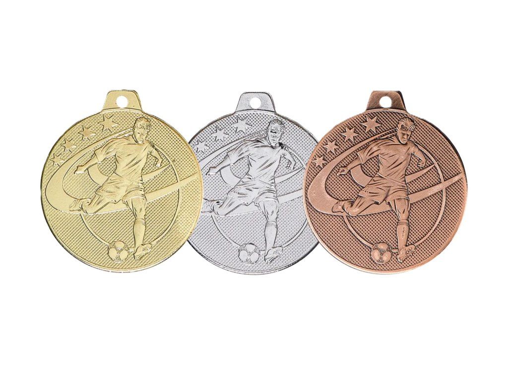Kovová medaila s motívom futbalu v zlatom, striebornom alebo bronzovom prevedení s možnosťou zavesenia na stuhu (podľa vlastného výberu). Na zadnú stranu medaily je možnosť umiestnenia grafiky/textu (priemer 45mm).