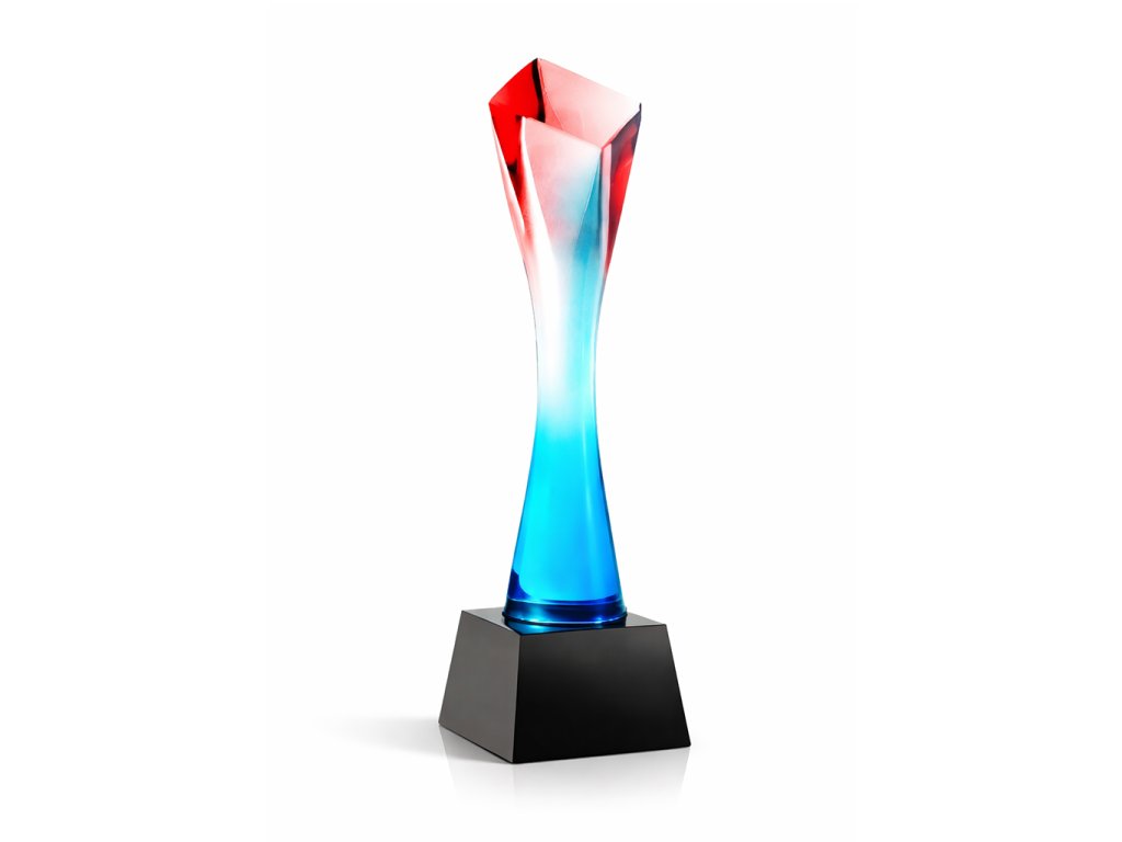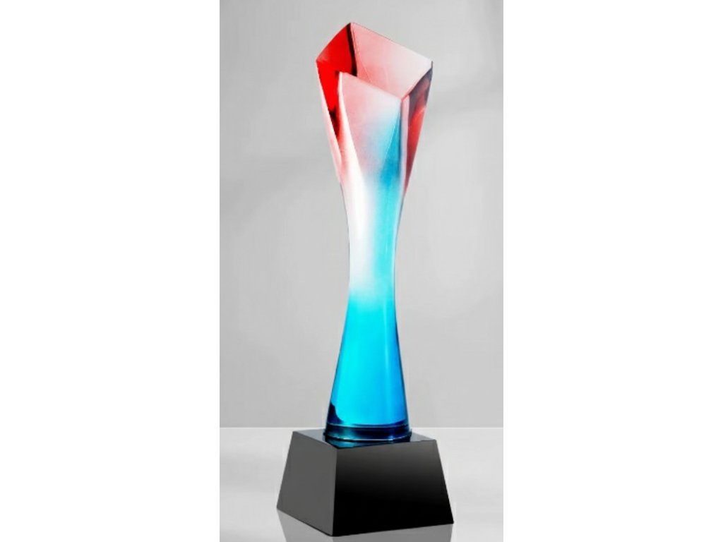 Štýlová sklenená trofej v rôznofarebných prevedeniach, s možnosťou gravírovania podstavec alebo na vrchnú časť skla (pri aplikácii oboch je gravírovanie účtované 2x). Dizajn skla je ideálnou voľbou pre rôzne druhy spoločenských udalostí, špeciálne športové podujatia a pod.