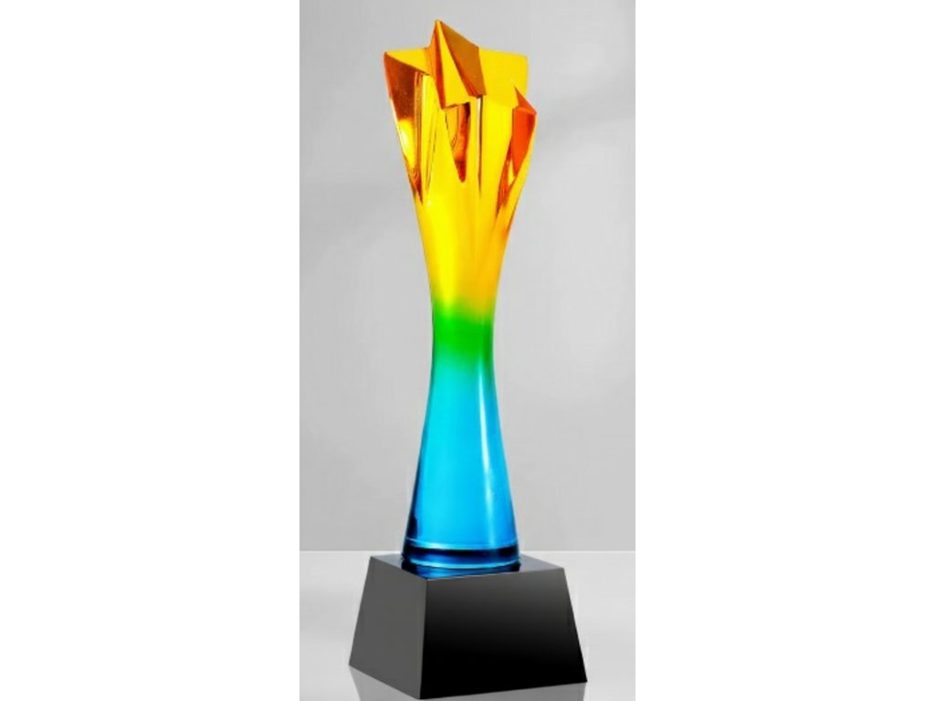 Štýlová sklenená trofej v rôznofarebných prevedeniach, s možnosťou gravírovania podstavec alebo na vrchnú časť skla (pri aplikácii oboch je gravírovanie účtované 2x). Dizajn skla je ideálnou voľbou pre rôzne druhy spoločenských udalostí, špeciálne športové podujatia a pod.