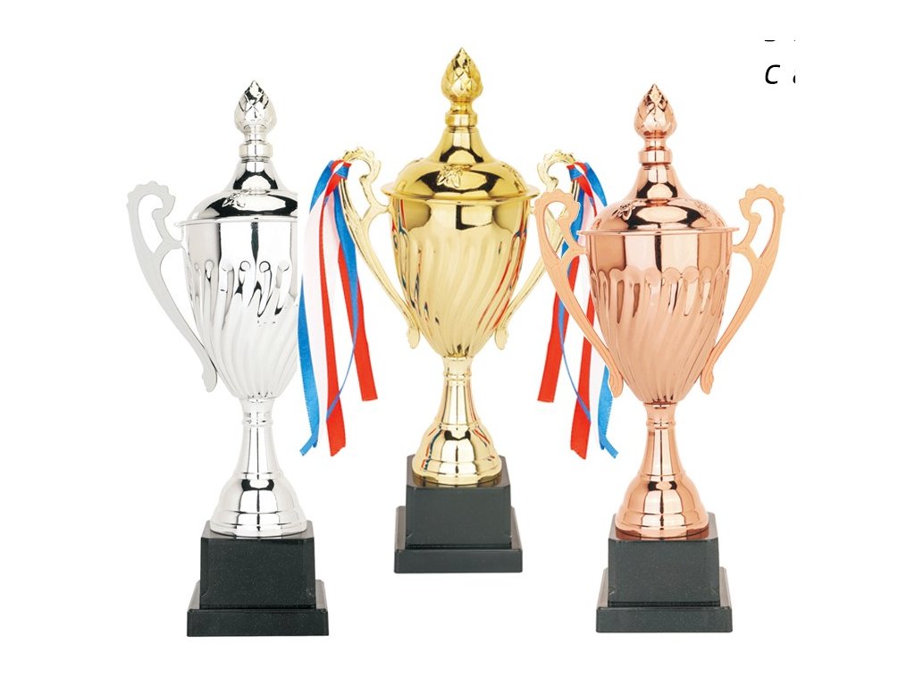 Unikátny pohár v zlatom, striebornom alebo bronzovom prevedení je doplnený štýlovými vrchnákmi, ktoré sú pevne spojené s kalichami. Trofej je možné doplniť o gravírovaný štítok, ktorý je umiestnený na podstavci. Pre odstupňovanie poradia ocenených sú dostupné 3 farebné varianty.