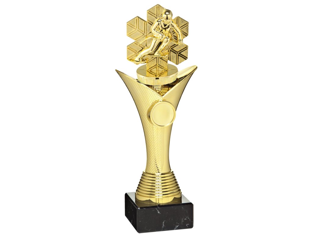 Výnimočný vzhľad trofeje vytvára štýlový zlatý podstavec, na ktorom je vsadená figúrka s motívom lyžovania. Trofej je možné doplniť o emblém (nie je v cene) a je ideálnou voľbou pre všetky typy športov + možnosť gravírovaného štítku umiestneného na mramorovom podstavci. Varianty sú dostupné v 3 veľkostiach pre odstupňovanie poradia ocenených.