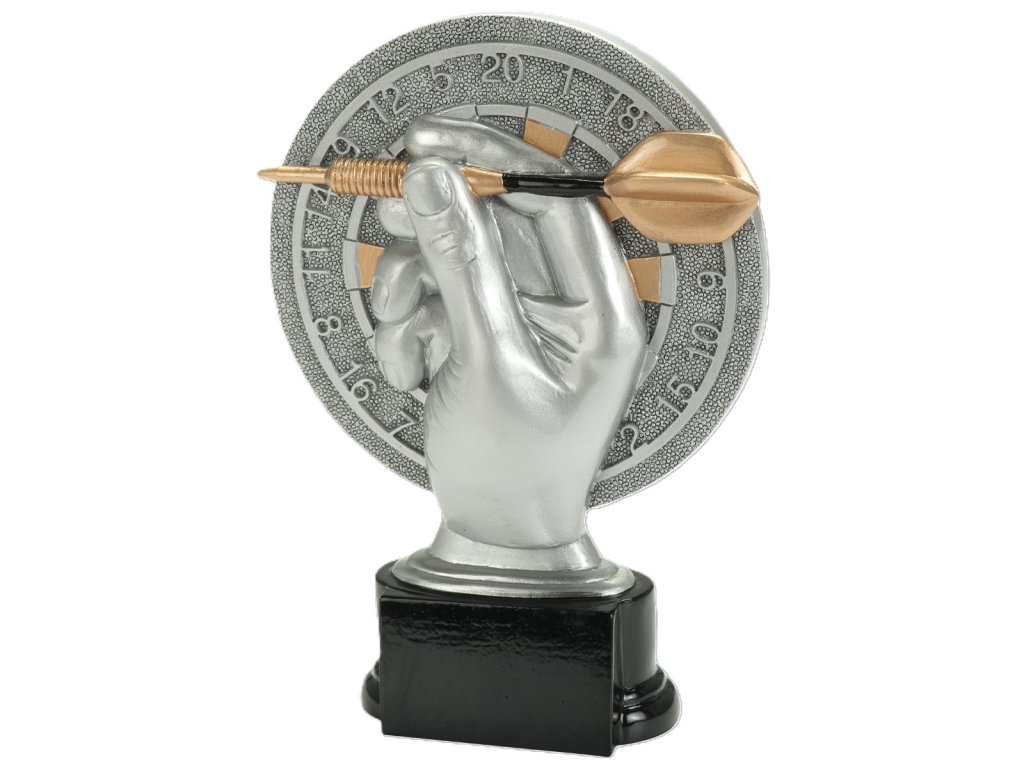 Štýlová resinová trofej s motívom šípok, uložená na podstavci, na ktorý je možné umiestniť gravírovaný štítok. Varianty sú dostupné 3 veľkostiach na odstupňovanie ocenených.